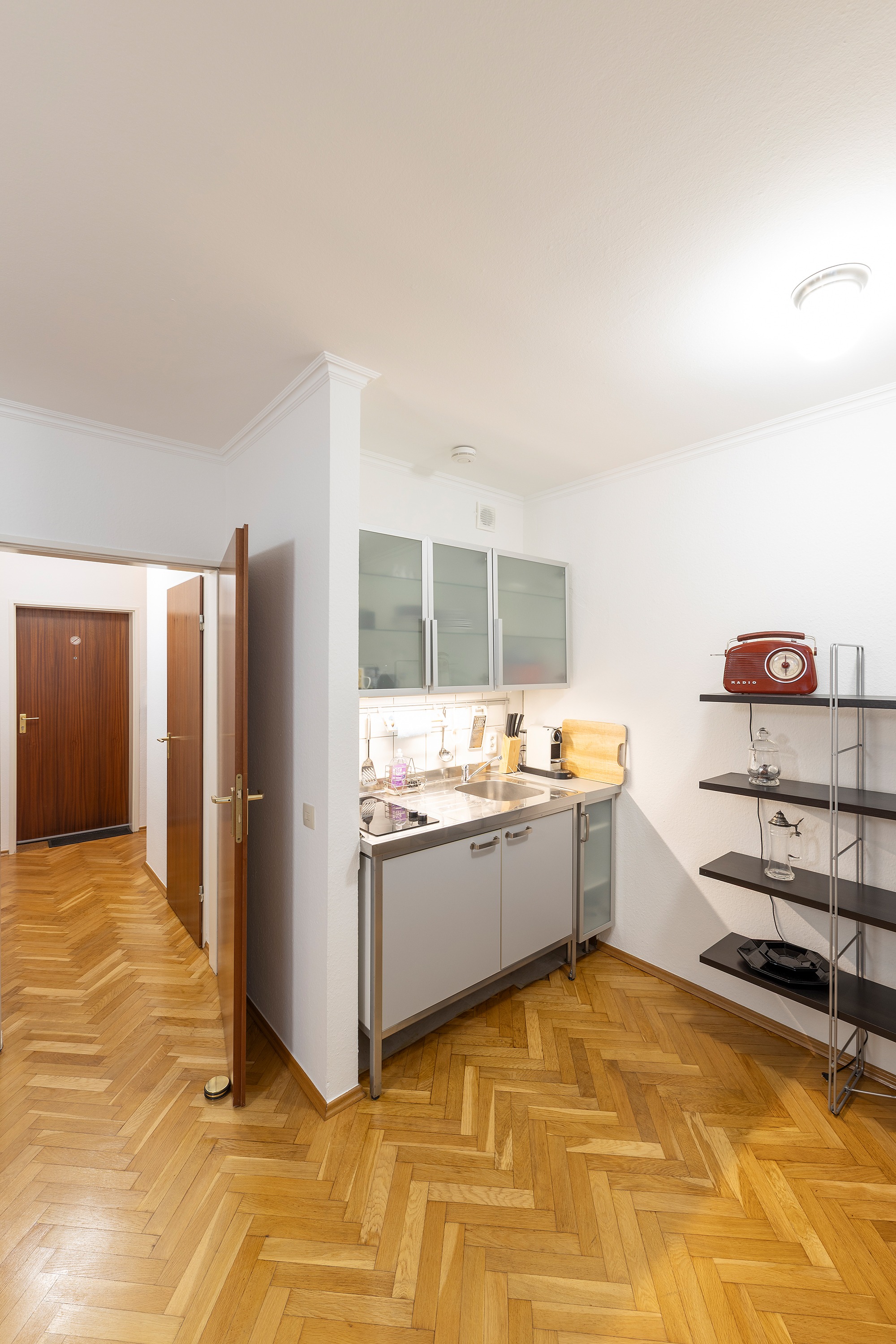Der Zugang zum Haus und Fahrstuhl ist ebenerdig, das Apartment befindet sich in der 1. Etage.