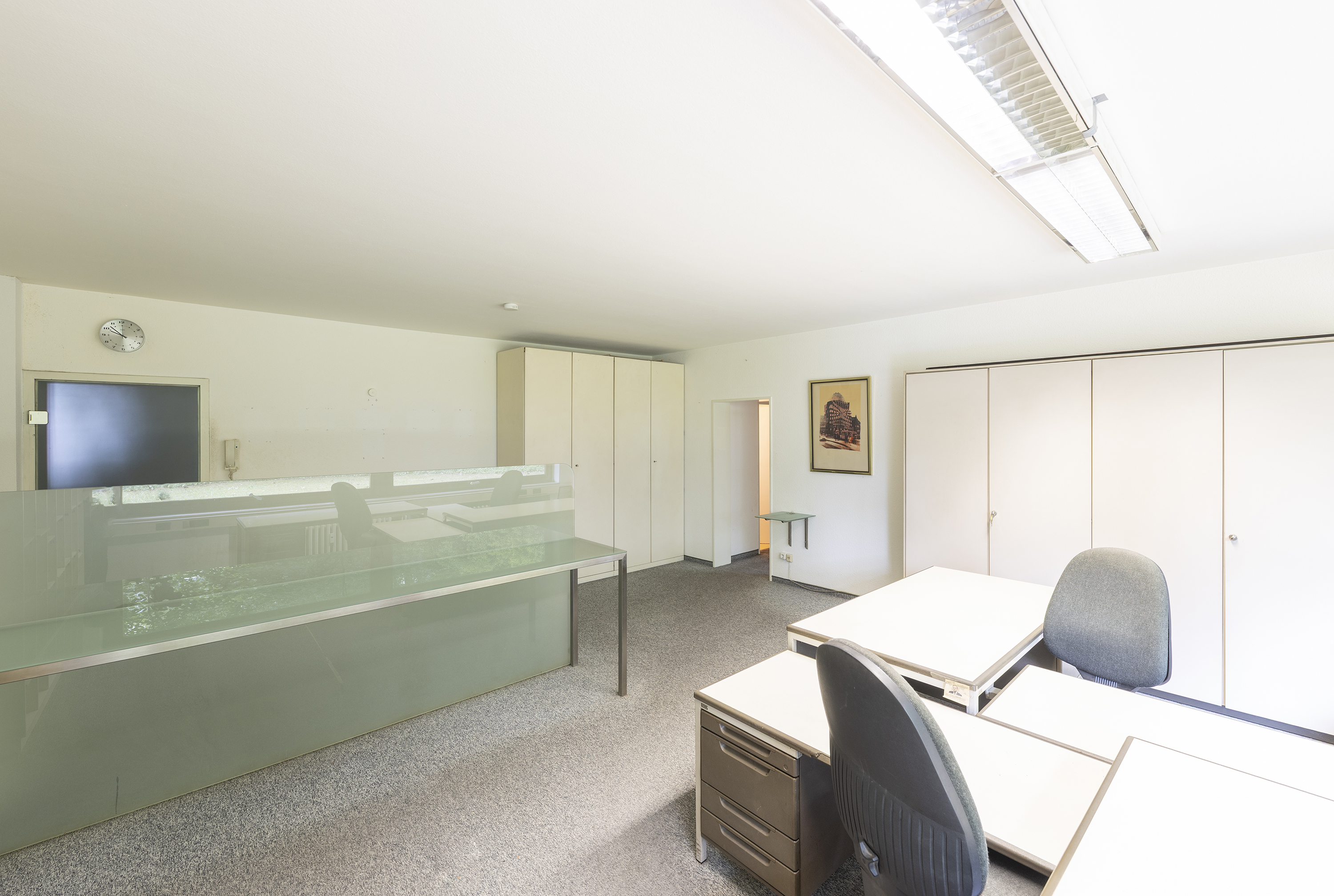 Die Fläche wurde bisher als Anwaltskanzlei genutzt. Die Innenausstattung entspricht dem Stil und Standard der 90er und wartet auf eine Modernisierung.