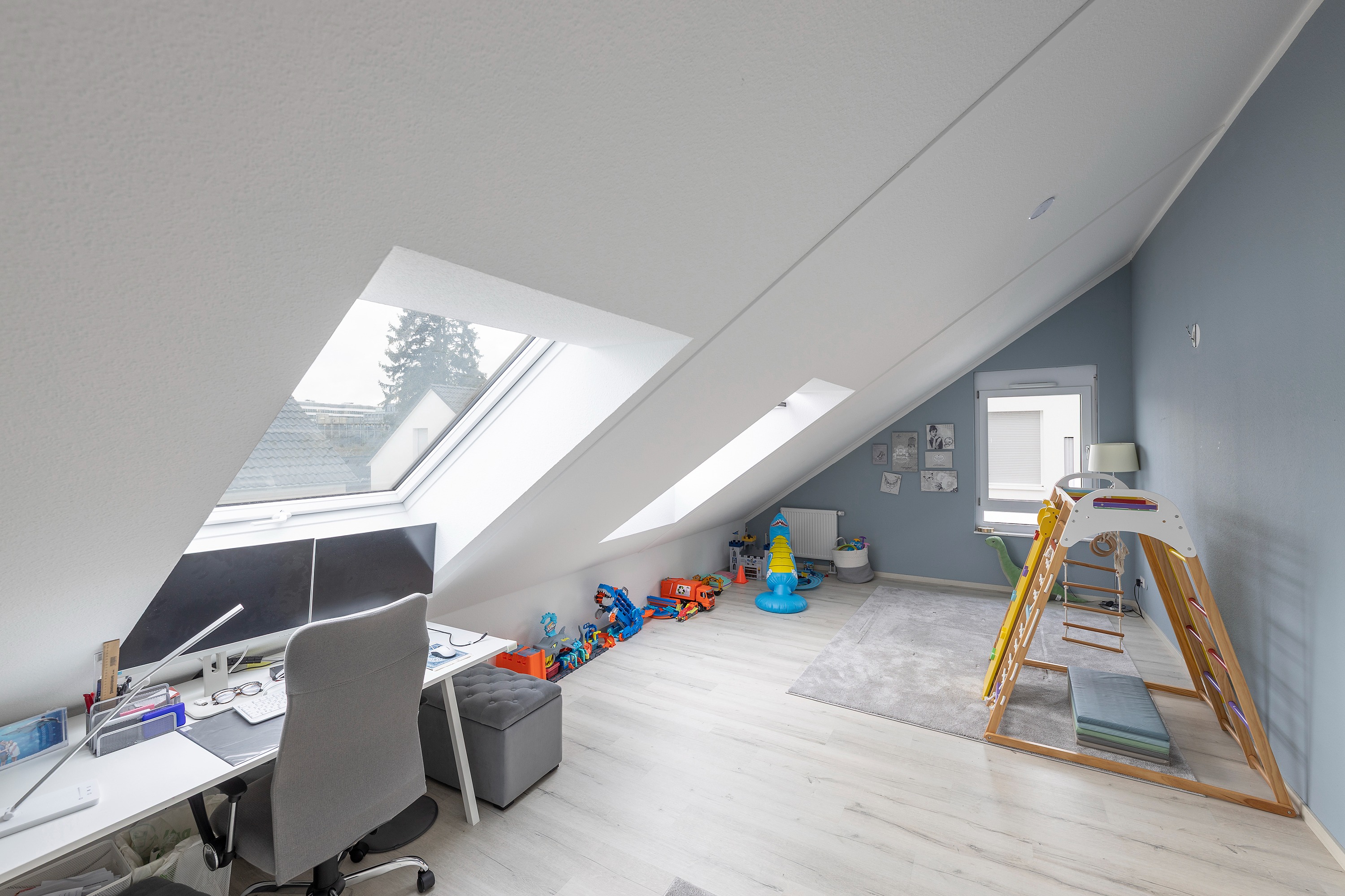 Im Dachgeschoss befinden sich ein großes Zimmer sowie ein Arbeitszimmer und ein Abstellraum.
