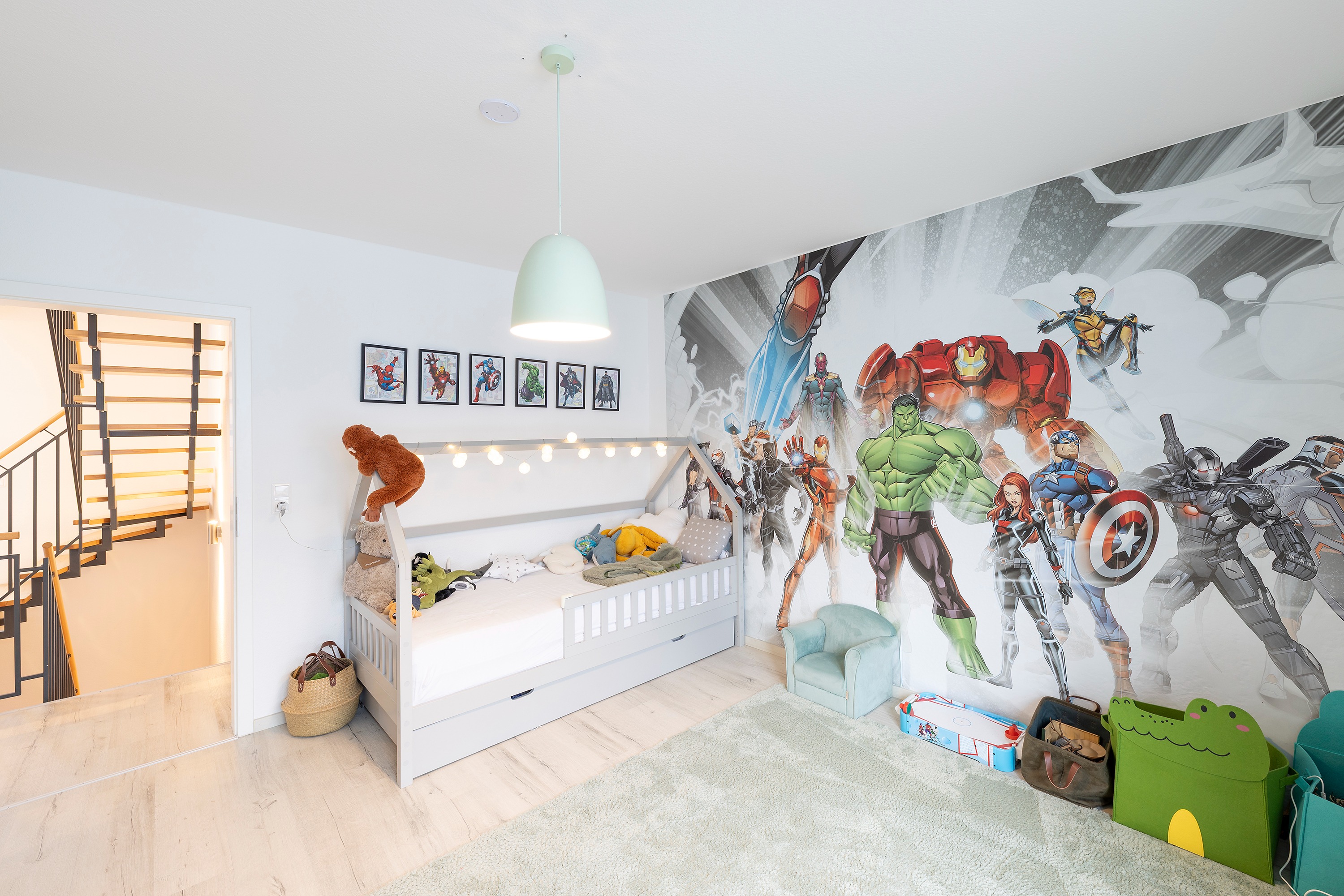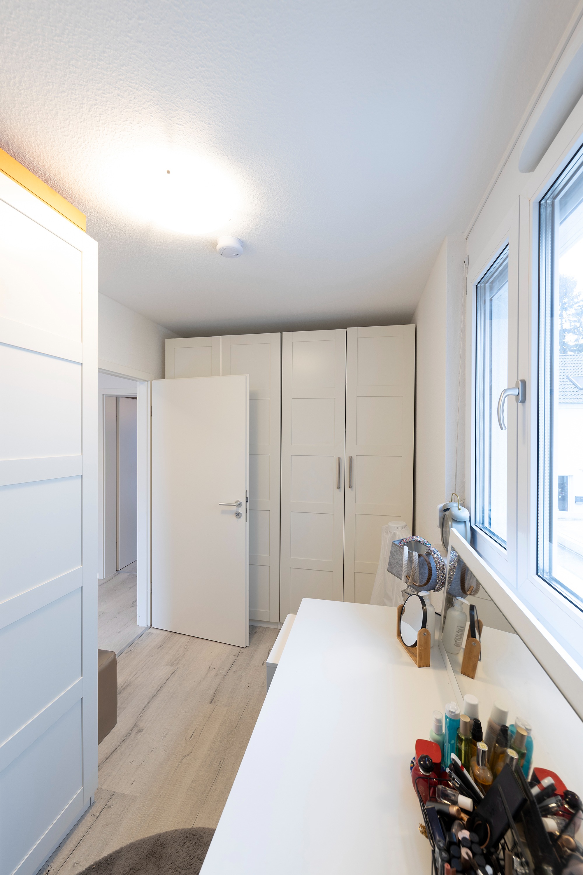 Die erste Etage besteht aus zwei Schlafzimmern, einem kleinern Ankleidezimmer und dem Badezimmer.