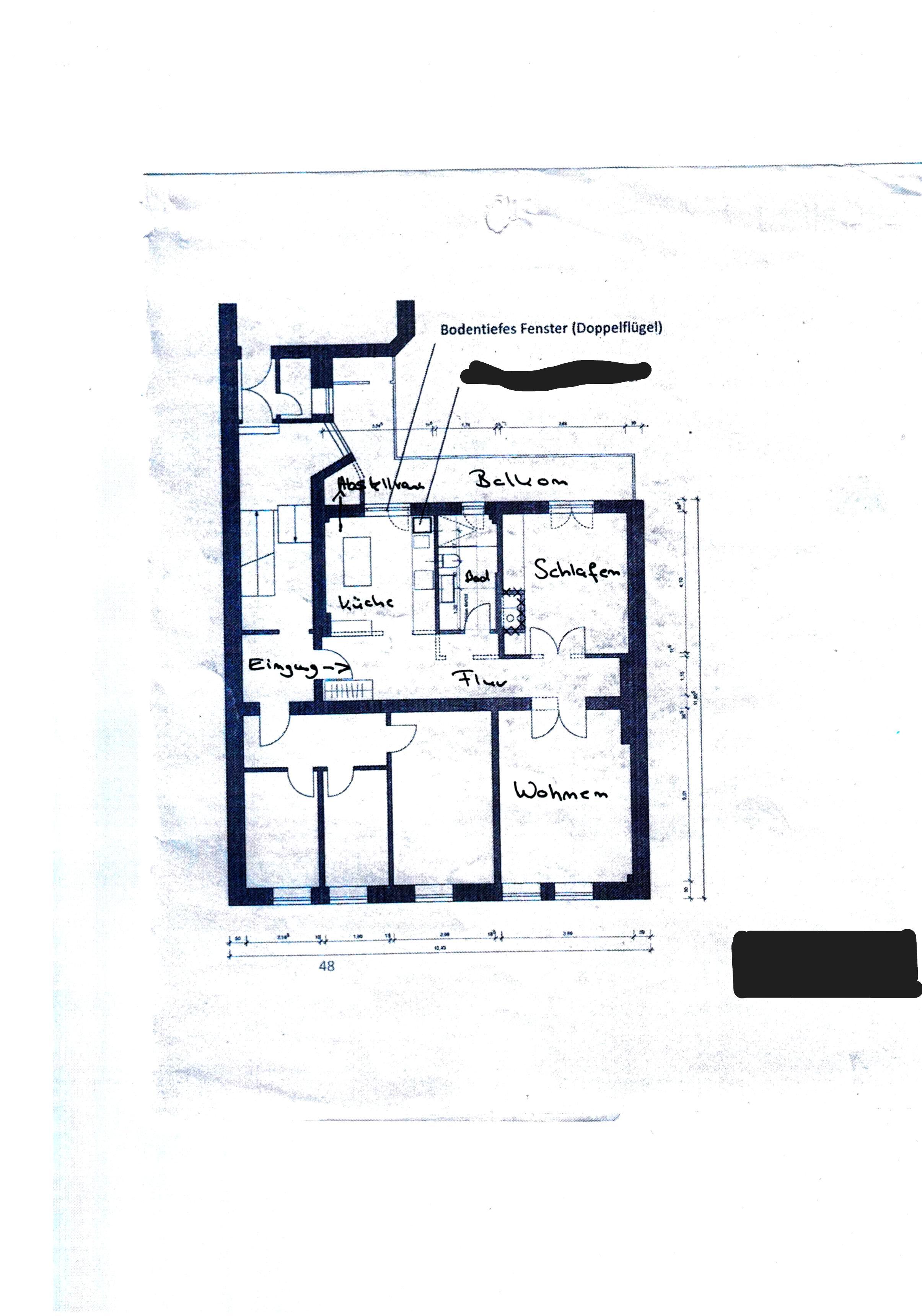 * Wohnküche mit Zugang zum Balkon + neuem bodentiefen Fenster