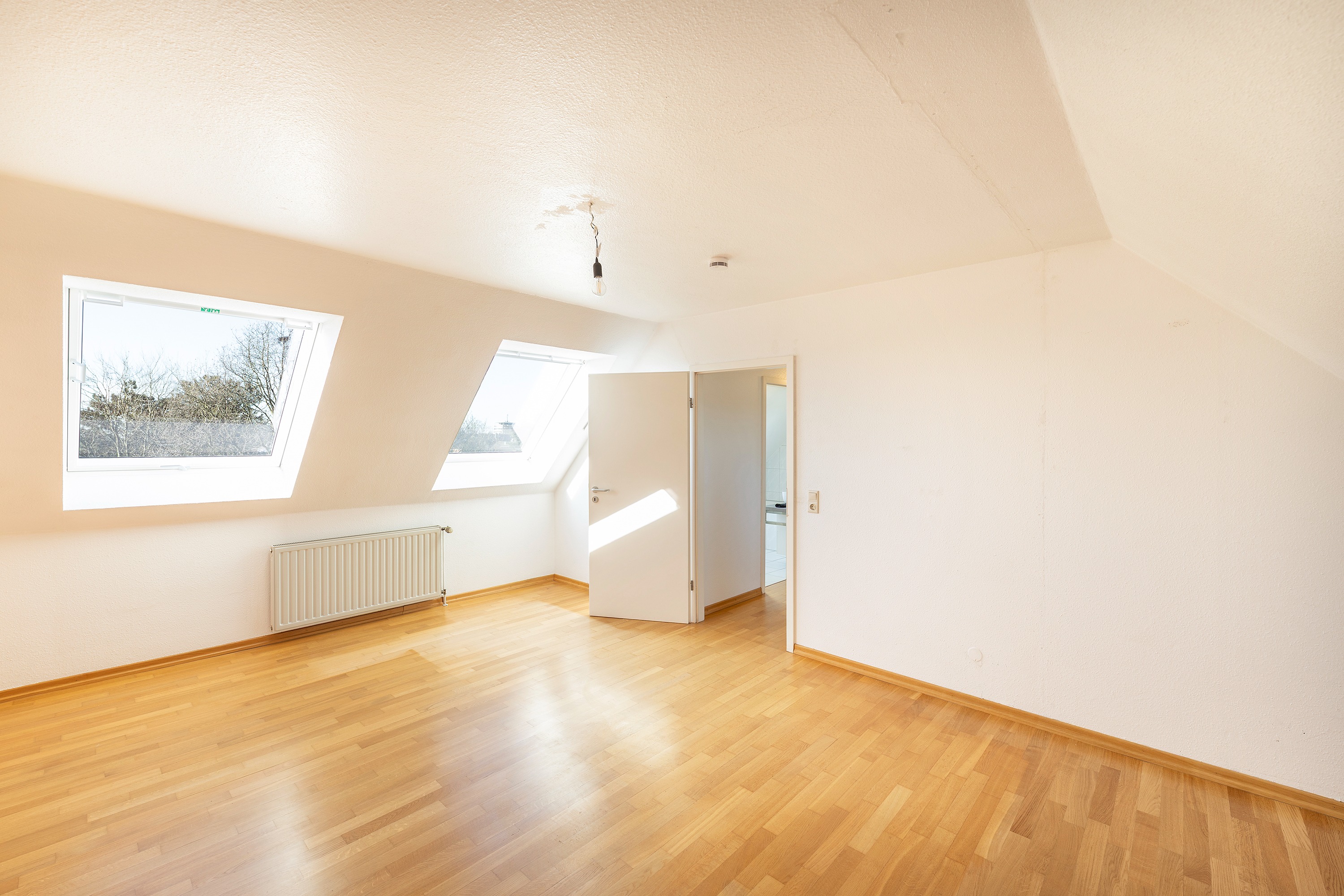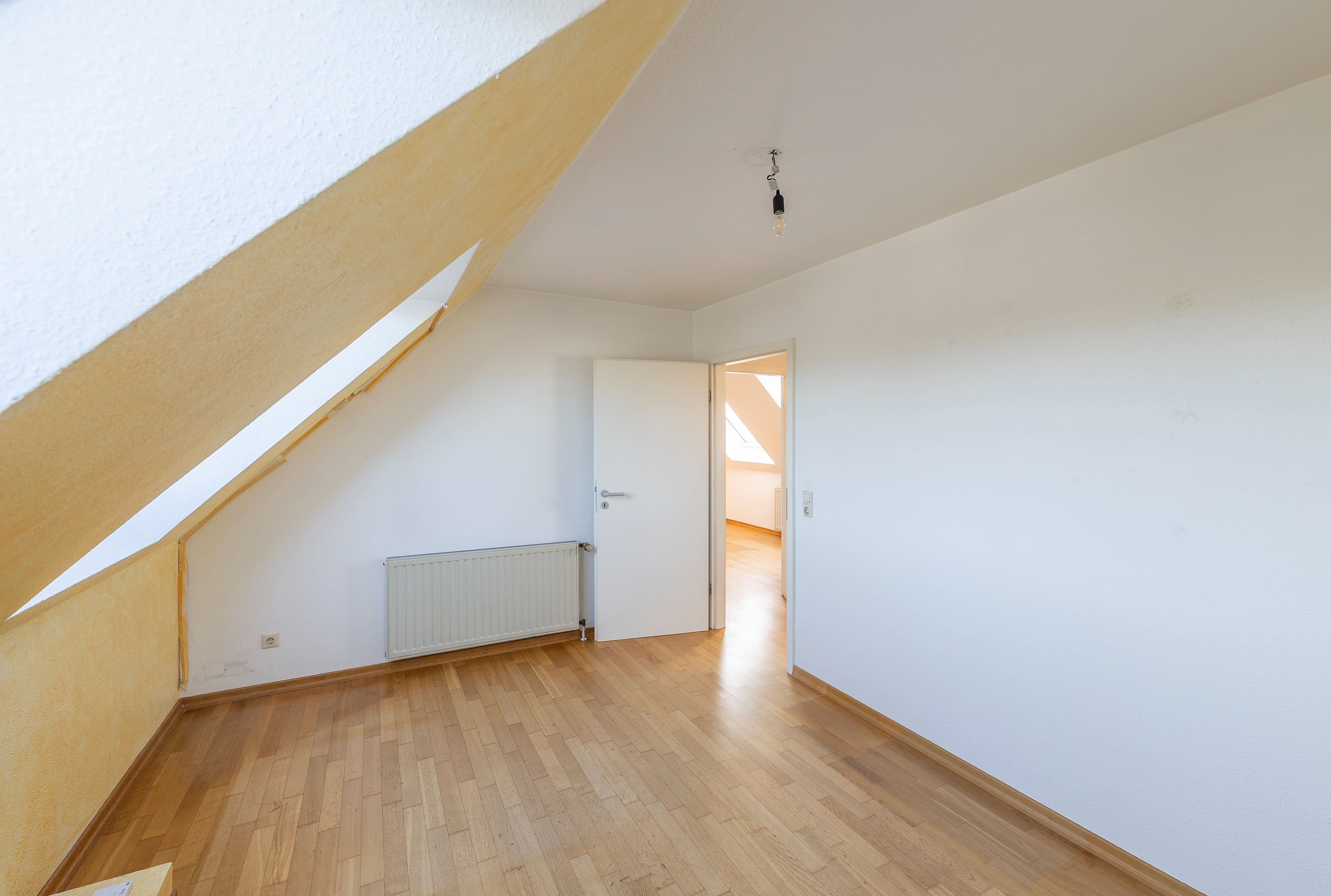 Über eine bequeme Treppe erreichen Sie die obere Etage. Hier befinden sich zwei gut geschnittene, geräumige Zimmer – ideal als Schlaf-, Kinder- oder Arbeitszimmer. Das Tageslichtbad ist mit Badewanne, Dusche sowie einem Waschmaschinenanschluss ausgestattet und rundet das Raumangebot ab.