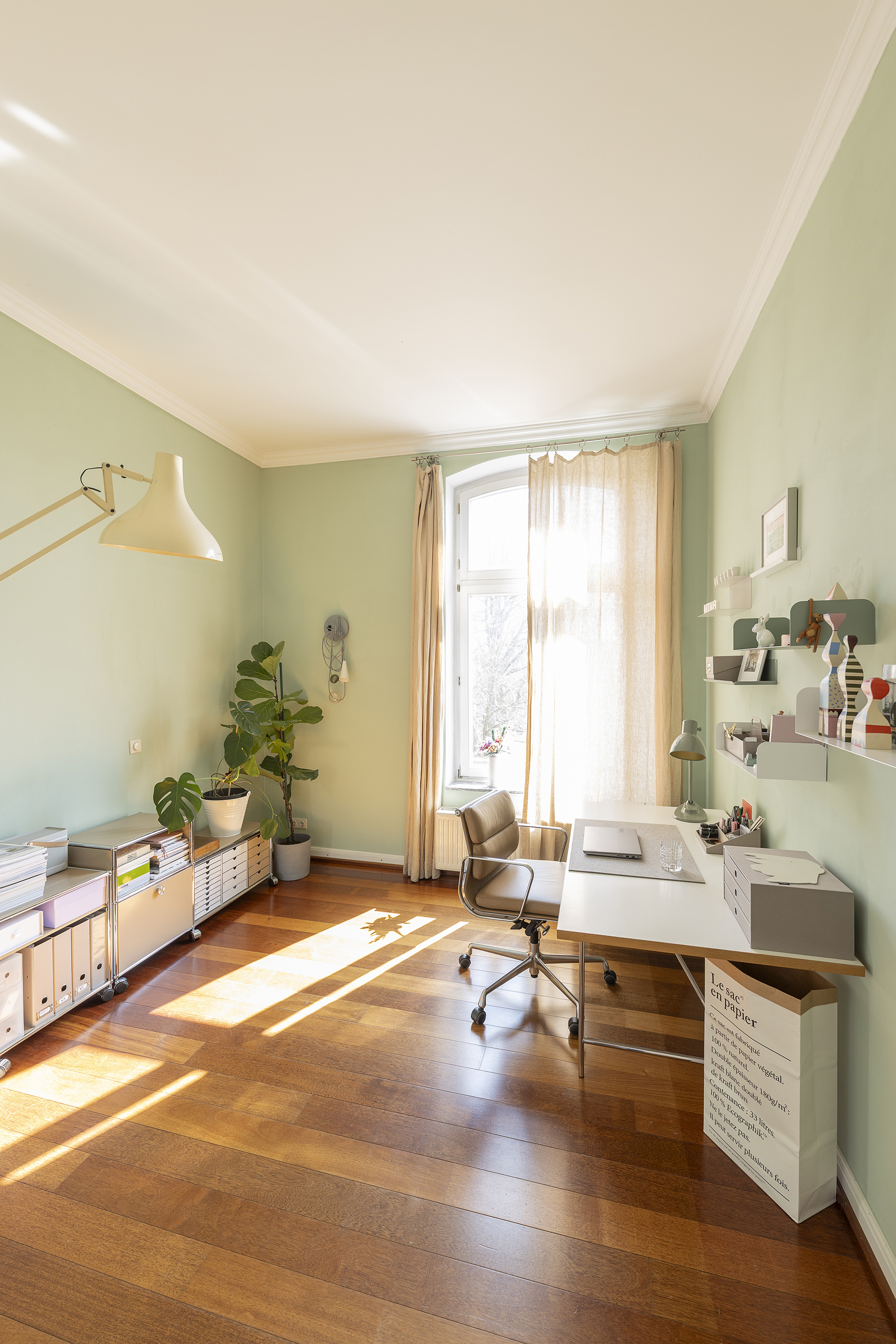 Das separate etwa 12 m² große Zimmer bietet Ihnen den perfekten Rückzugsort für konzentriertes Arbeiten oder Lesen. Vom Entrée aus gelangen Sie in das elegante Gäste-Bad mit großzügiger Walk-In Dusche und einem praktischen Ankleidebereich. Von hier aus kommen Sie direkt ins Schlafzimmer mit dem Bad en Suite.