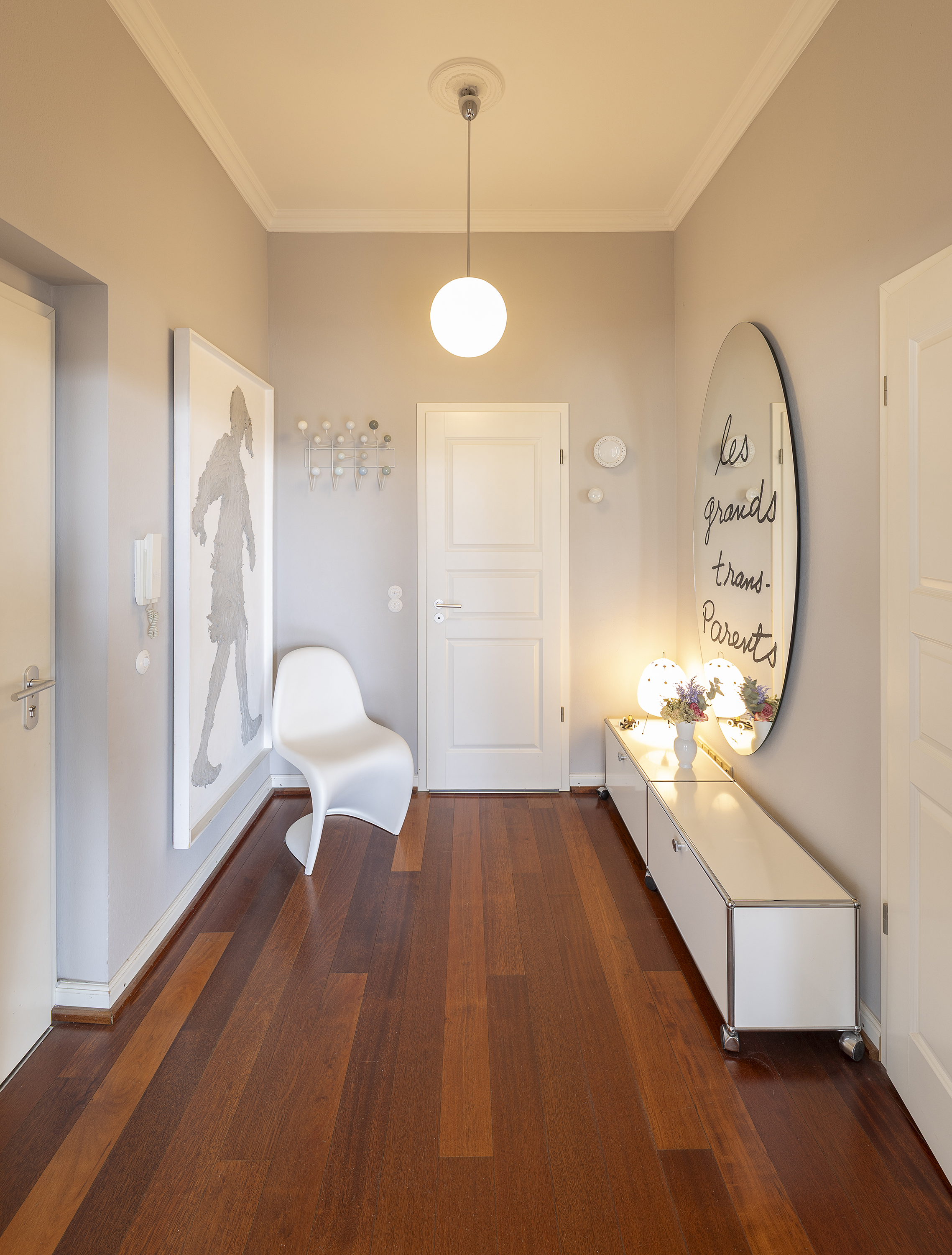 Die Wohnbereiche sind mit edlem und robustem Merbau-Parkett ausgestattet, das für eine warme und einladende Atmosphäre sorgt.