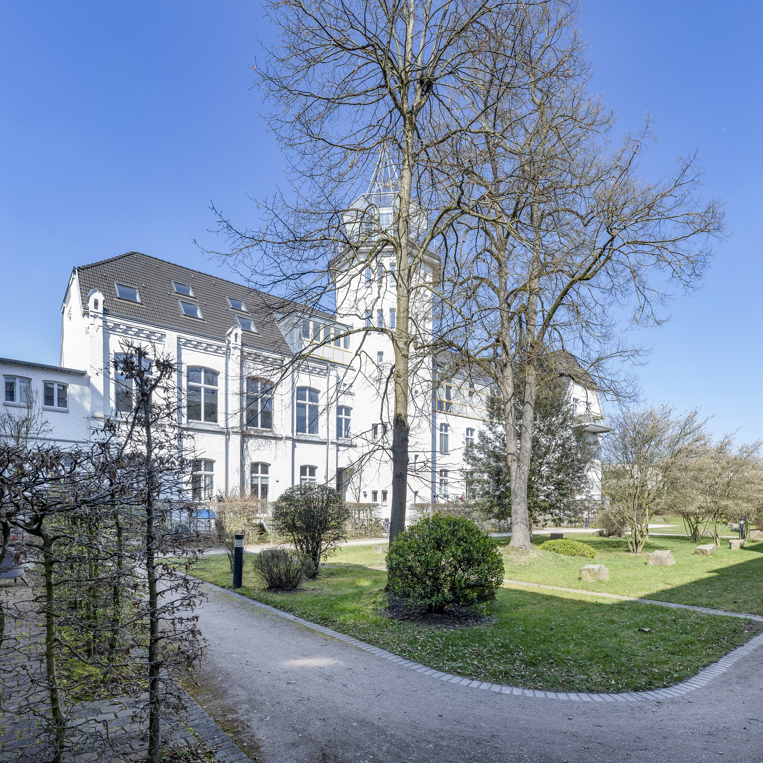 Willkommen im beeindruckenden, denkmalgeschützten Dreiflügelhaus, wo Historie auf modernen Komfort trifft. Diese exklusive Einheit in der ersten Etage besticht atmosphärisch und bietet Ihnen einen schönen Blick in den parkähnlichen Garten.