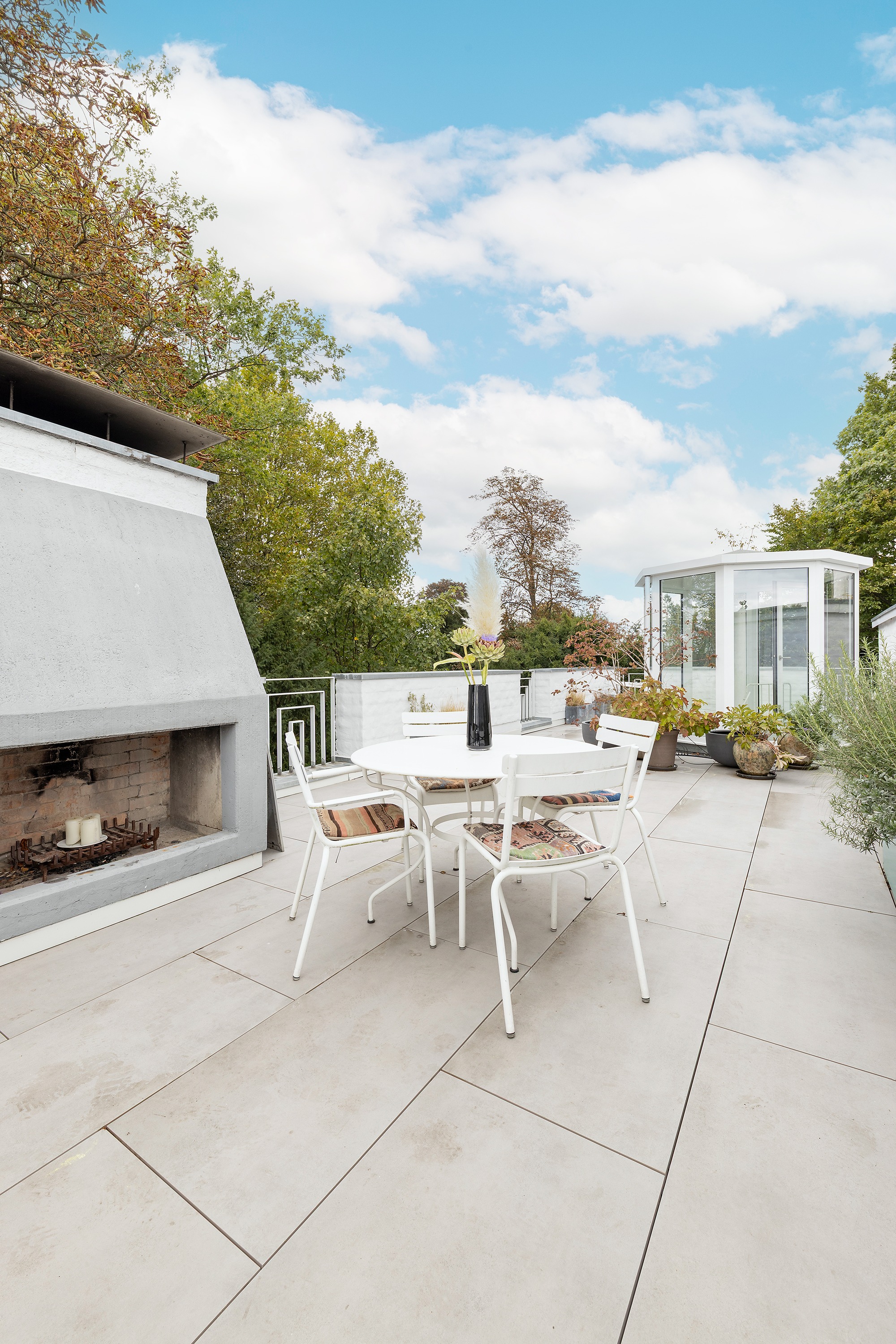 Das Highlight der Wohnung ist die nicht einsehbare Dachterrasse, die sich über die gesamte Wohnfläche erstreckt. Mit Außenkamin, viel Privatsphäre und spektakulärem Ausblick haben sie ein unvergleichliches Outdoor-Erlebnis.