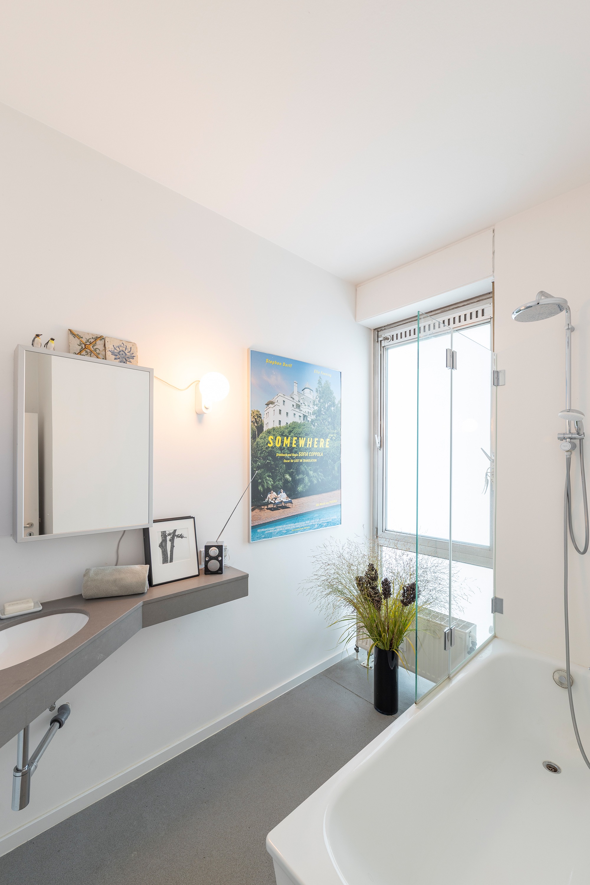 * die Glasbrüstung auf der Dachterrasse mit Blick zum Rhein wurde 2024 neu installiert