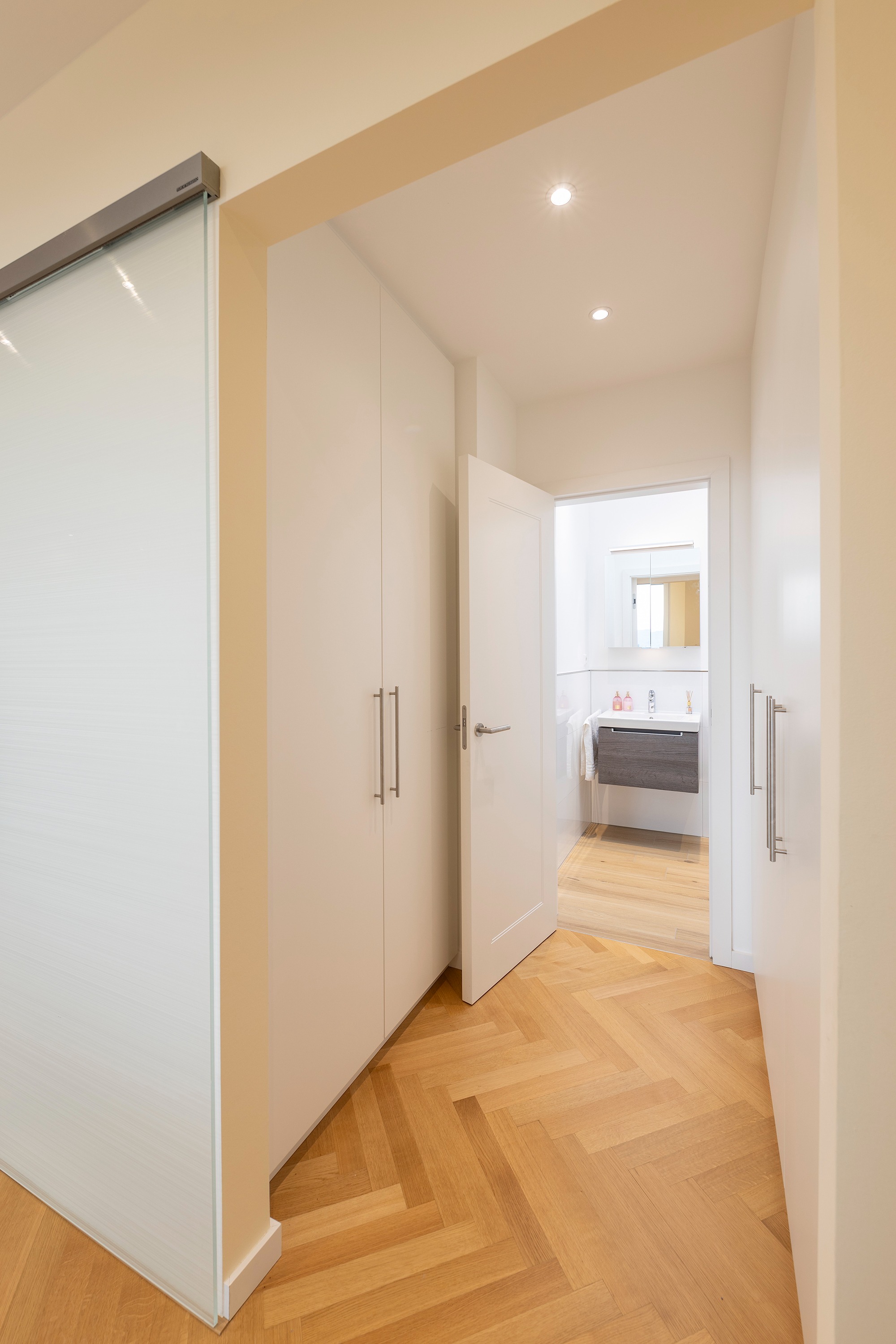 Der private Wohnbereich umfasst ein großzügiges Schlafzimmer, ein weiteres Zimmer zur flexiblen Nutzung als Arbeits-, Gäste- oder Kinderzimmer sowie ein großes und modernes Badezimmer mit Tageslicht am Ende des Wohnbereichs.