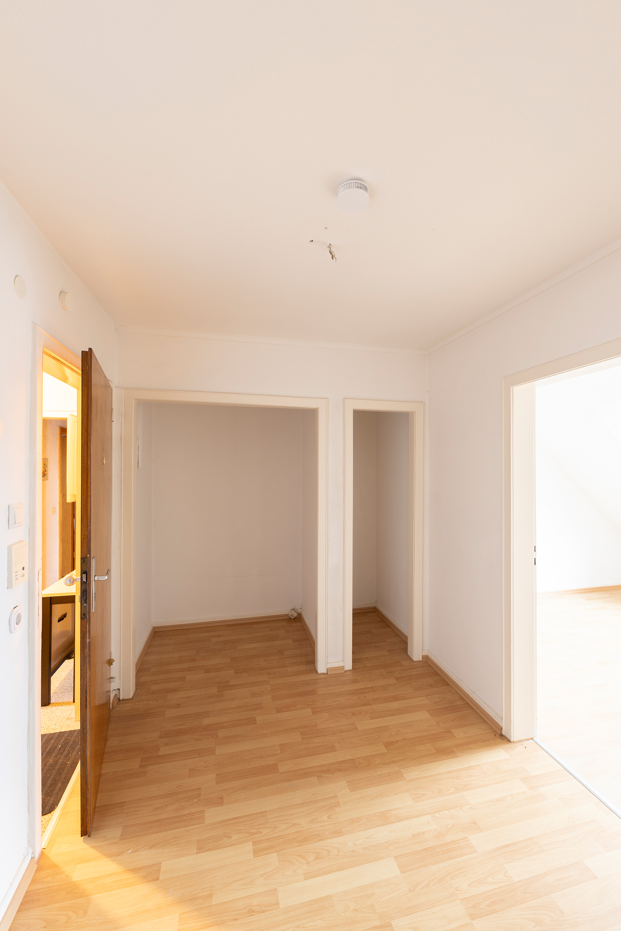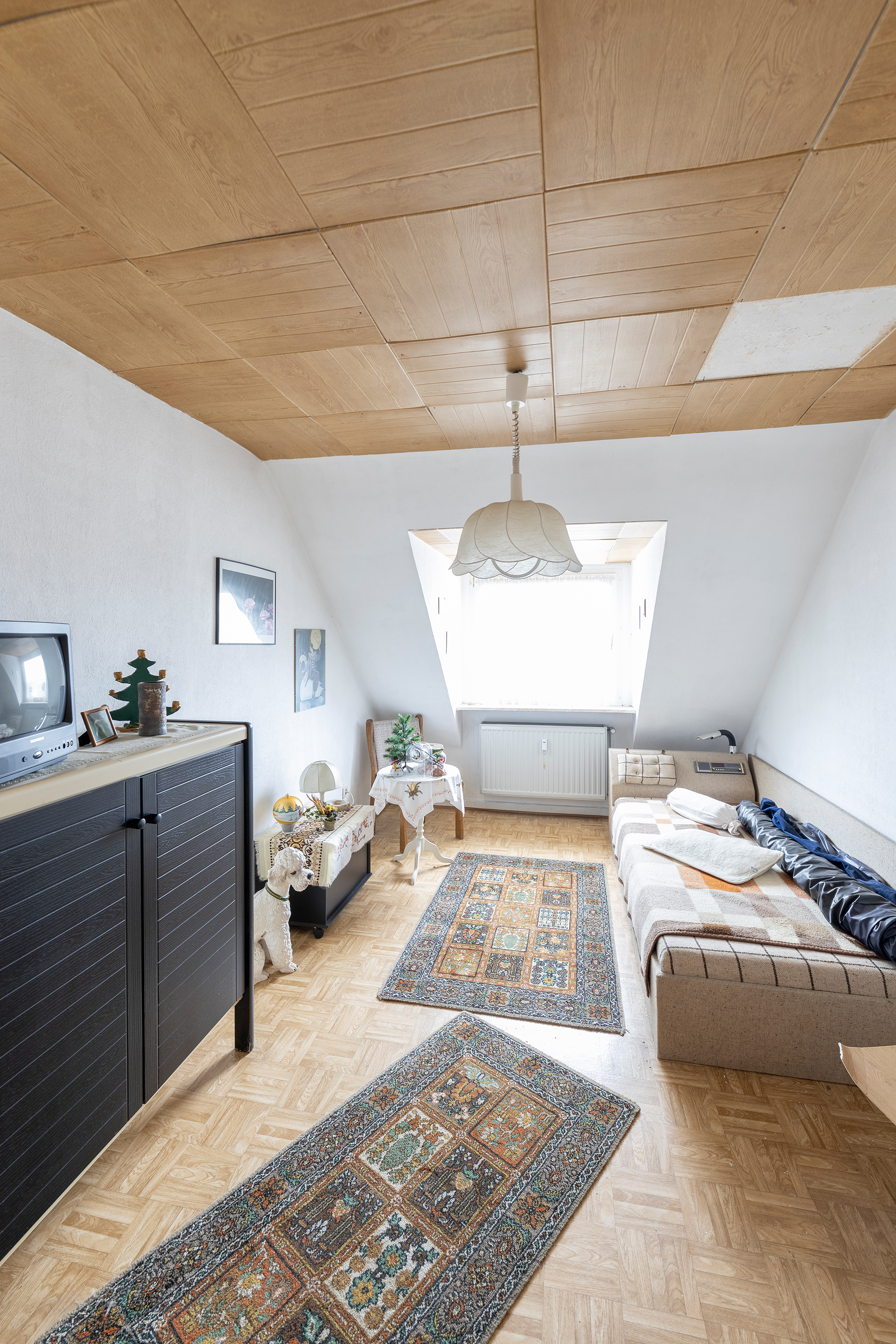 Die DG-Wohnung ist aktuell frei. Im DG gibt es noch zwei ungenutzte Mansardenräume, die eine zusätzliche Ausbaureserve zu Wohnzwecken bieten. Alle anderen Einheiten sind vermietet.