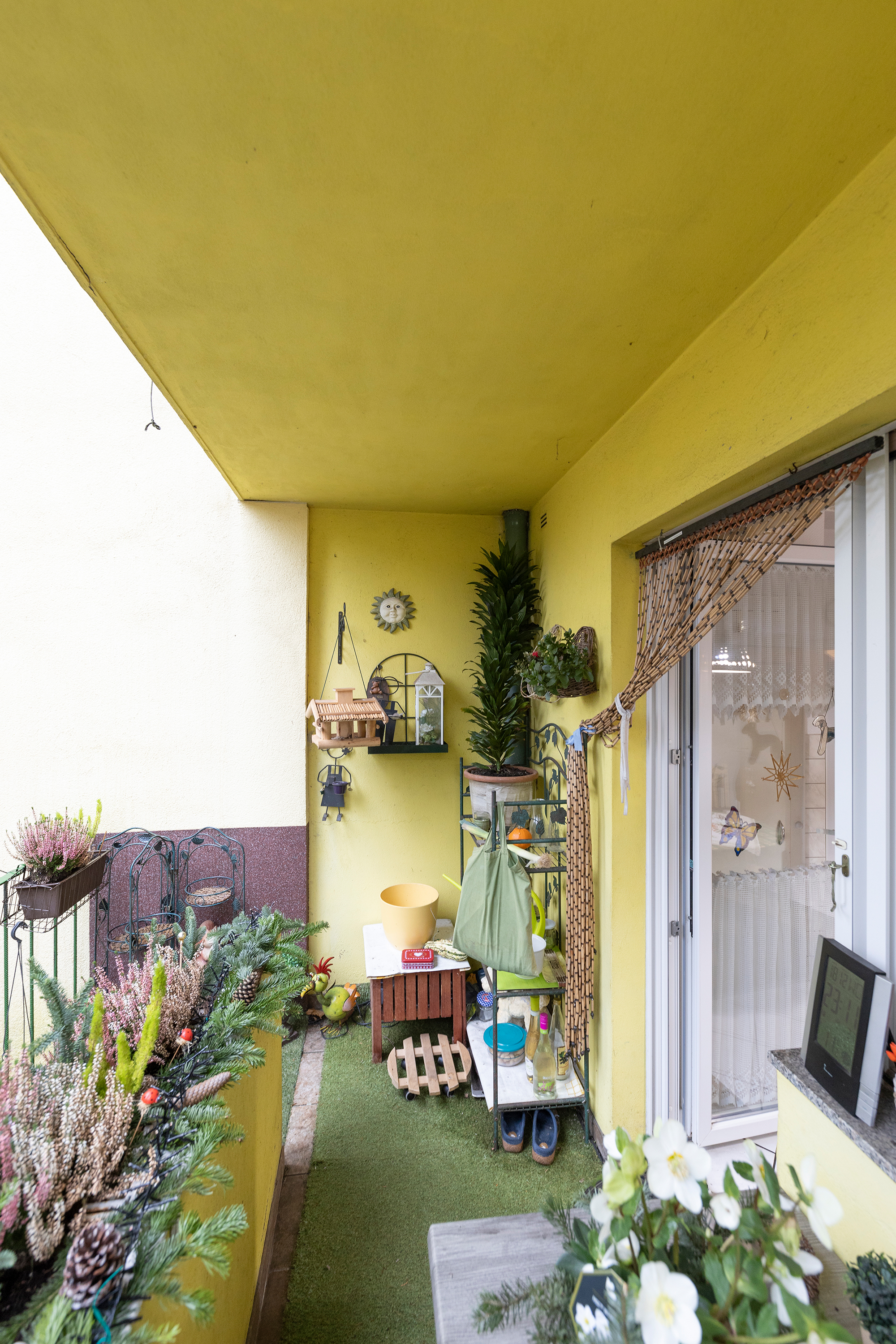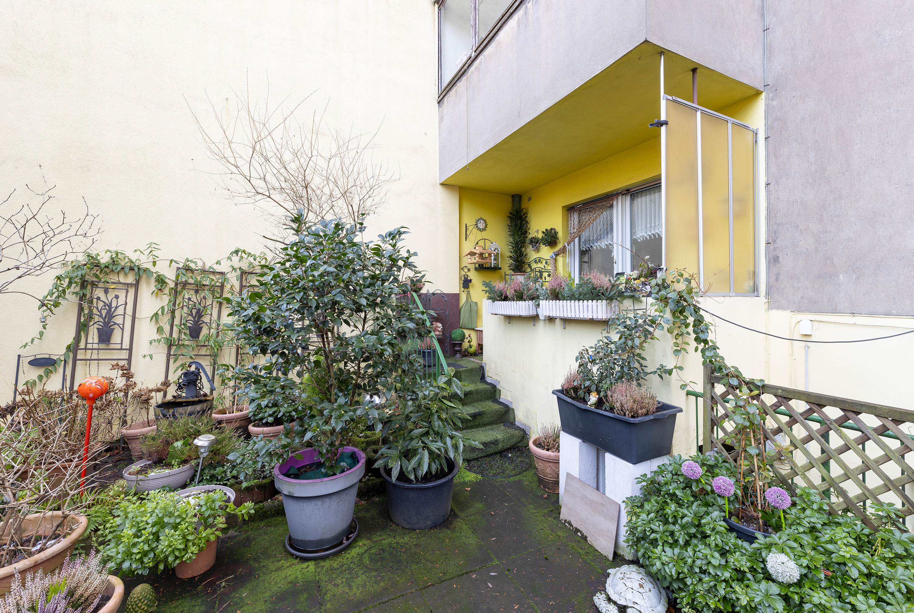Die EG-Wohnung mit Balkon und begrüntem Hof wird von der Eigentümerin selbst bewohnt.