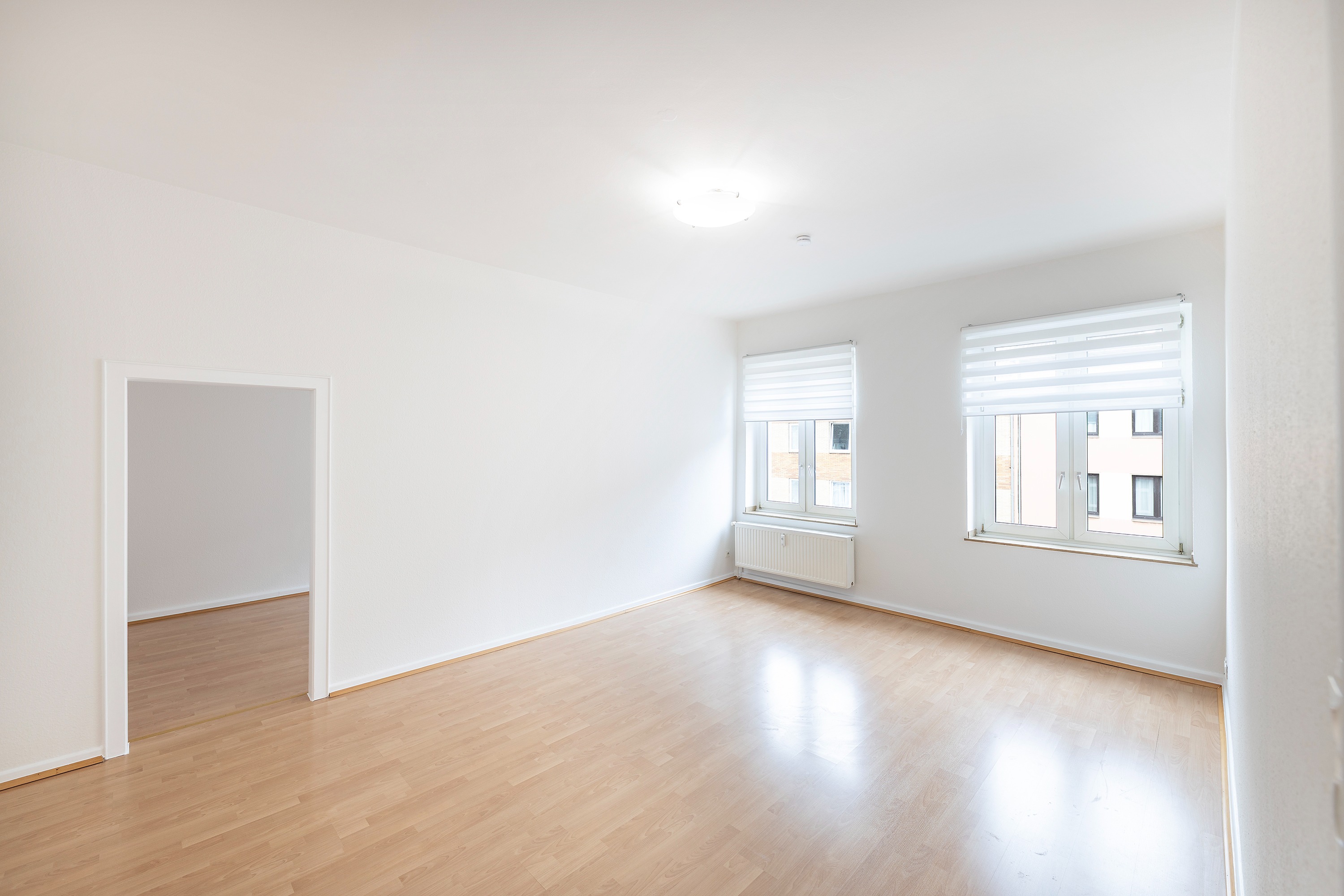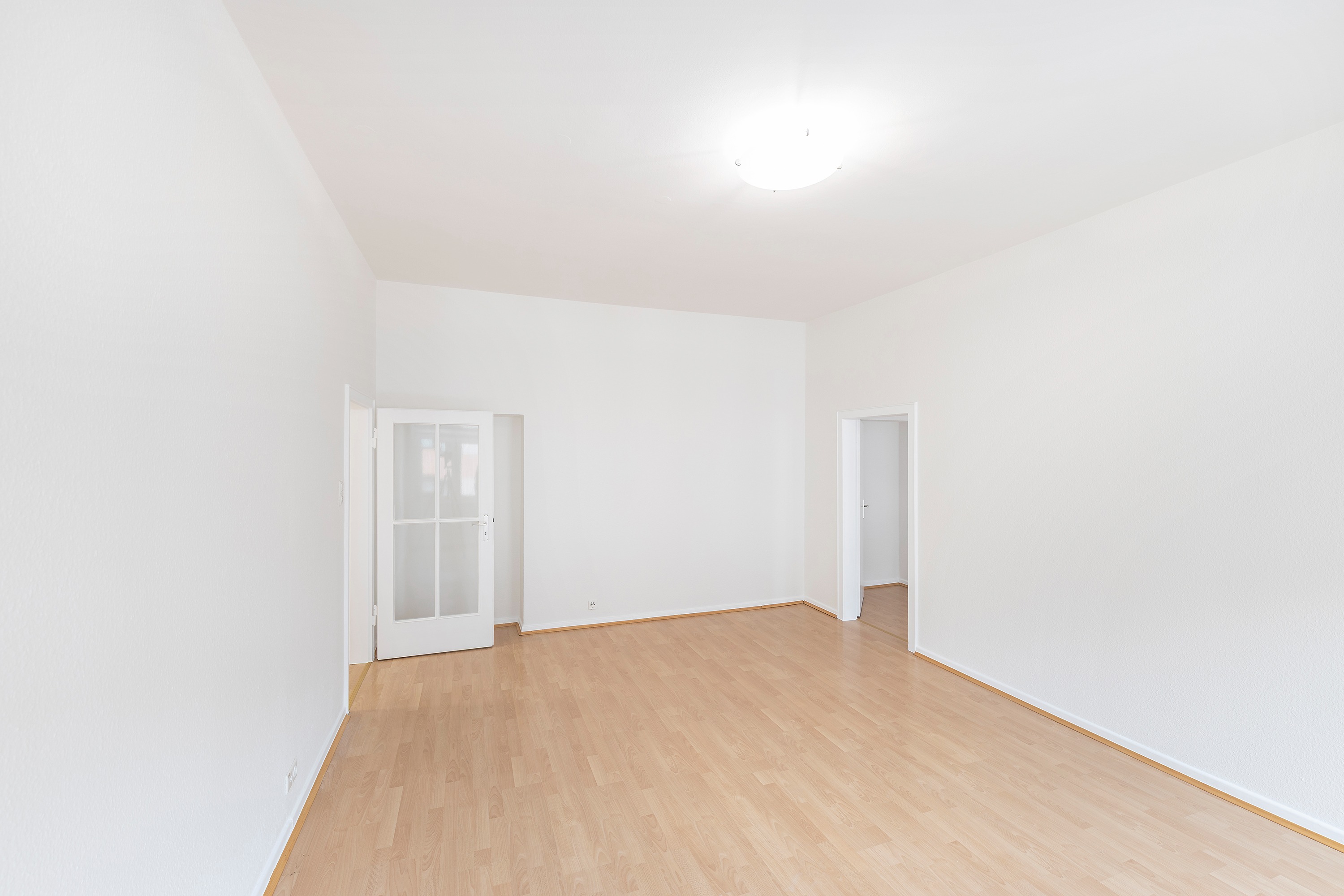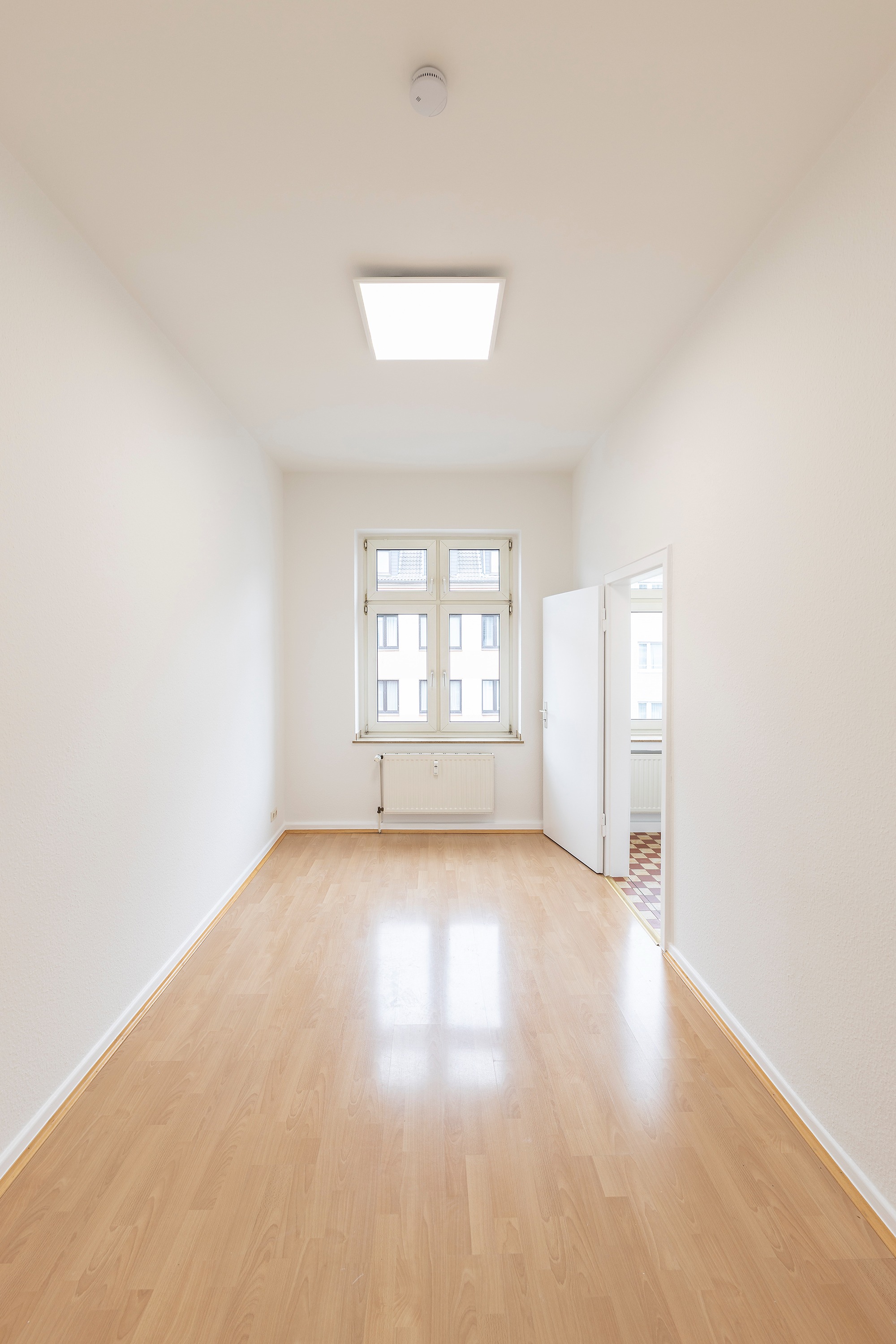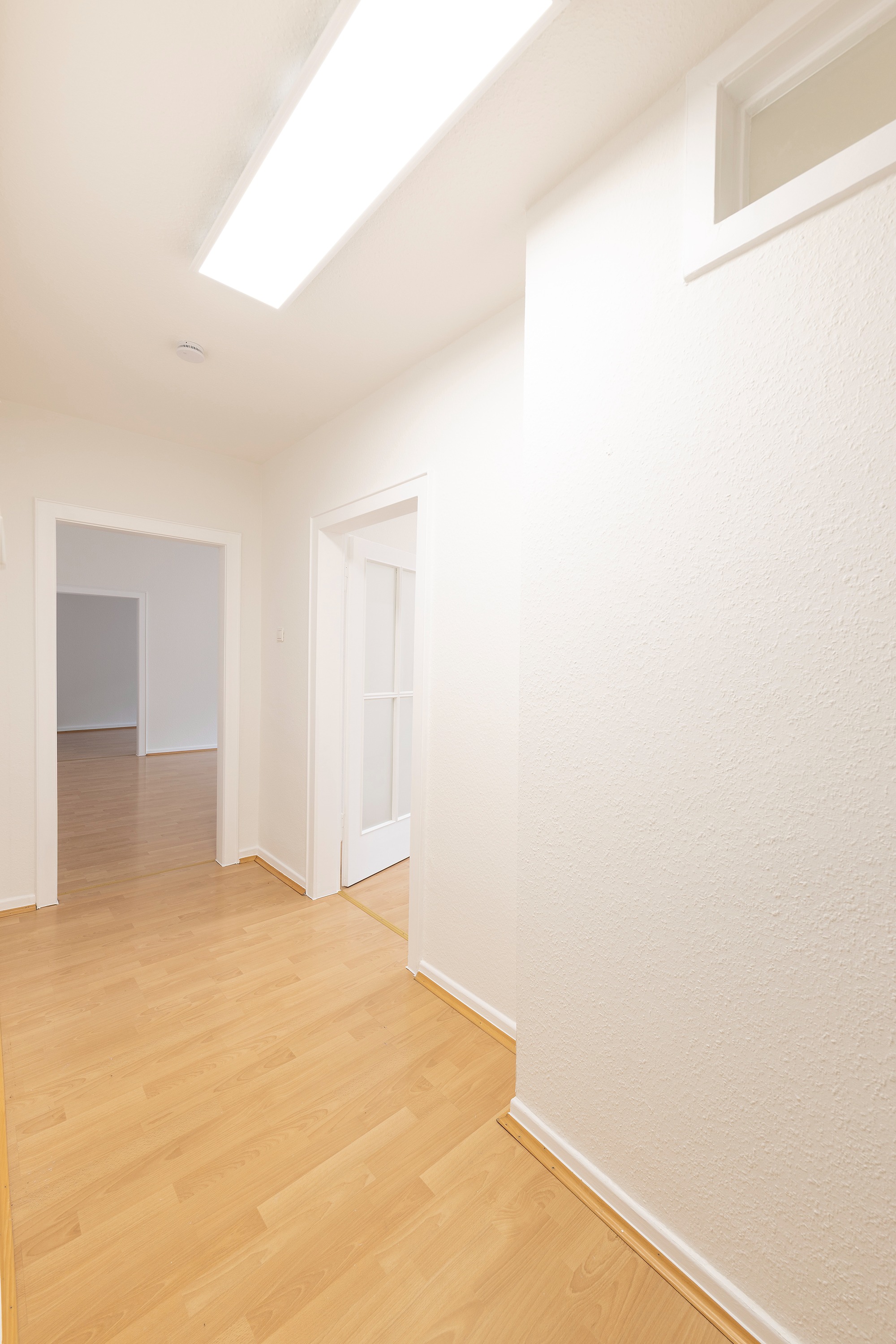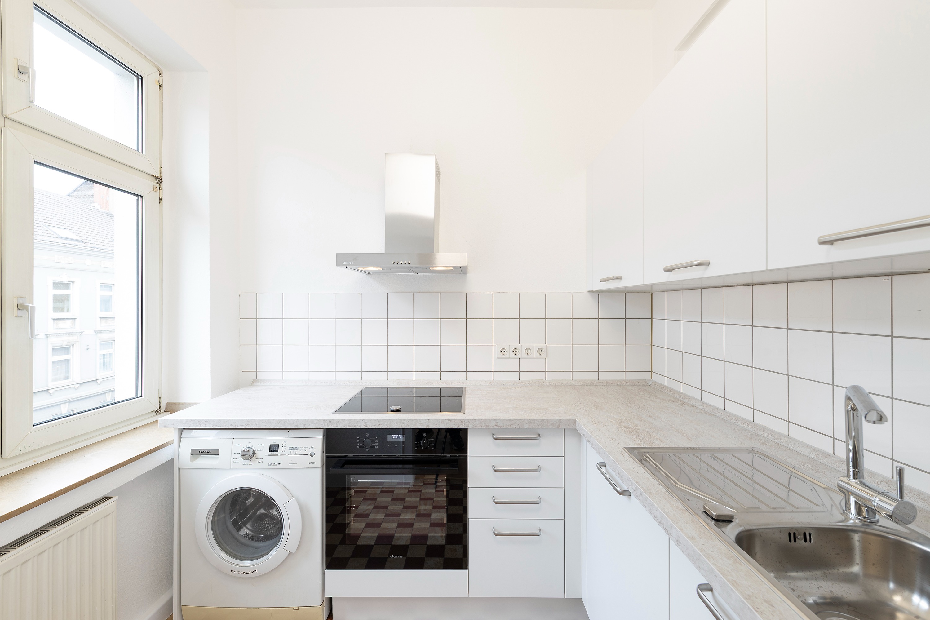 Die Wohnung wurde komplett weiß gestrichen, Türen und Zargen weiß lackiert und die Einbauküche neu eingebaut.